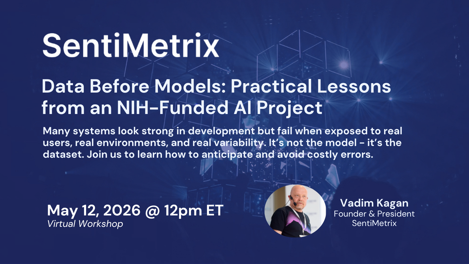 On Tuesday, May 12 @ 12pm ET, join SentiMetrix Founder and President Vadim Kagan for a practical 30 minute webinar based on lessons learned during NIH-funded PathML development.